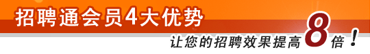 招聘通會員,招聘信息排序靠前,并在首頁顯要位置強力推薦。 |