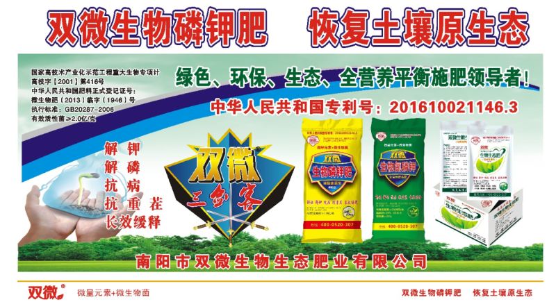雙微(微量元素+微生物菌)商標持有人,雙微生物磷鉀肥發(fā)明專利人,雙微系列生態(tài)肥屬于國內頂級產品中的頂級產品。連跨三個行業(yè):微量元素肥,微生物菌肥,藥肥。復合國家產業(yè)政策!準備打造百位百萬富翁!