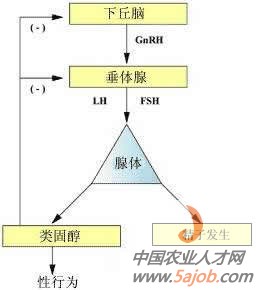 進入主題之前,讓我們先回顧一下公豬的繁殖生理。圖1示公豬的生殖激素調控。由下丘腦分泌促性腺素釋放素(GnRH)。GnRH作用于垂體,釋放促黃體生成素(LH)和促卵泡素(FSH),這兩種激素再隨血液運行,作用于睪丸。在公豬體內(nèi),LH和FSH可刺激雷迪氏細胞分泌睪酮、支持細胞分泌雌二醇。這兩種類固醇激素共同作用維持公豬的性欲。LH和FSH還會刺激配子的產(chǎn)生(例如:精子的生成)。精子是在睪丸中生精小管內(nèi)壁上的支持細胞中產(chǎn)生的,這個過程同時伴隨著分裂和分化。精原細胞可通過有絲分裂不斷增多,精原細胞最后發(fā)育成初級精母細胞。這些細胞最后進行減數(shù)分裂,先發(fā)育成次級精母細胞,然后發(fā)育成精子細胞。精子細胞進一步發(fā)育成為精子。對豬來說,精子生成的過程需要6至7周時間。