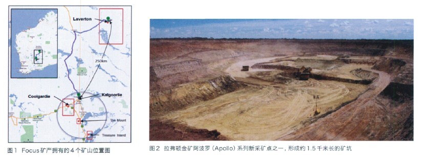 澳大利亞Focus 礦產有限公司( 英文全稱:Focus MineralsLtd,ASX :FML,以下簡稱Focus 礦產) 是澳大利亞最有活力的黃金生產商之一,在橫跨澳大利亞的兩個最大黃金生產區——庫爾加迪( Coolgardie)黃金成礦帶和西澳大利亞的拉弗頓(Laverton)地區中,擁有四個生產礦山,如圖1 所示。Focus 礦產也是一家勘探和開發公司,專注于成為一家重要的黃金和鎳的生產企業。其公司發展潛力表現如下: