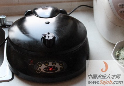 將和好的粉做成一個(gè)個(gè)餅放電餅鐺(以前沒(méi)有這玩意就用鐵鍋,一樣的),