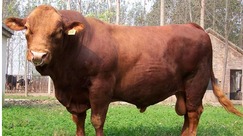 四、與我國黃牛雜交效果 1974年和1993年,我國數(shù)次從法國引入利木贊牛,在河南、山東、內(nèi)蒙古等地改良當(dāng)?shù)攸S牛。利雜牛體型改善,肉用特征明顯,生長(zhǎng)強(qiáng)度增大,雜種優(yōu)勢(shì)明顯。目前,山東、黑龍江、安徽為主要供種區(qū),全國供種不足,現(xiàn)有改良肉牛45萬頭。