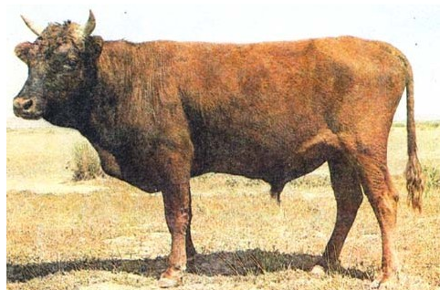 哈薩克牛額部稍凹陷,顱骨平略凹,角多向側(cè)前上方彎曲,角尖向內(nèi)呈半橢圓形,角質(zhì)細(xì)致。頸細(xì)、中等長(zhǎng),肉垂不發(fā)達(dá)。尾毛鬐甲低平。背腰平直,后軀較窄,多呈尖斜尻。尾根較低,尾毛長(zhǎng)達(dá)蹄部。蹄較小,質(zhì)堅(jiān)實(shí)。乳房小,呈碗狀,著生較多的長(zhǎng)毛。被毛粗厚多絨,冬季密而長(zhǎng),春夏自然脫毛。毛色雜,以黃色和黑色為主。