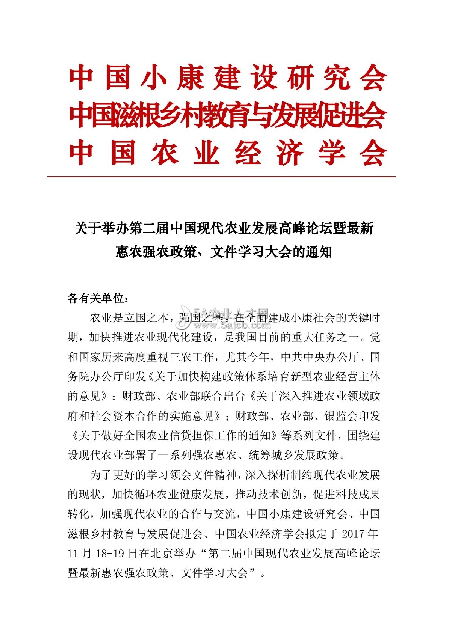 關(guān)于舉辦第二屆中國(guó)現(xiàn)代農(nóng)業(yè)發(fā)展高峰論壇暨最新惠農(nóng)強(qiáng)農(nóng)政策、文件學(xué)習(xí)大會(huì)的通知