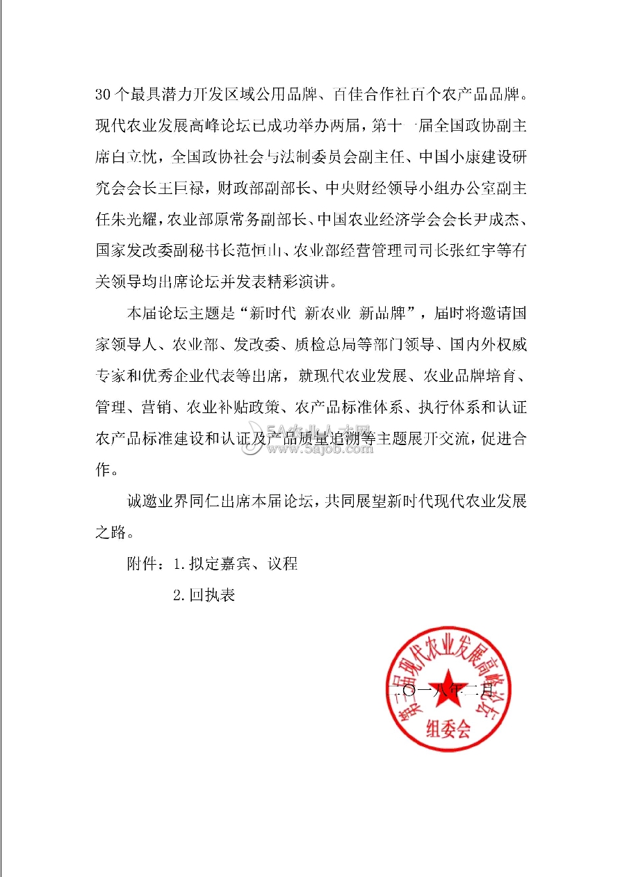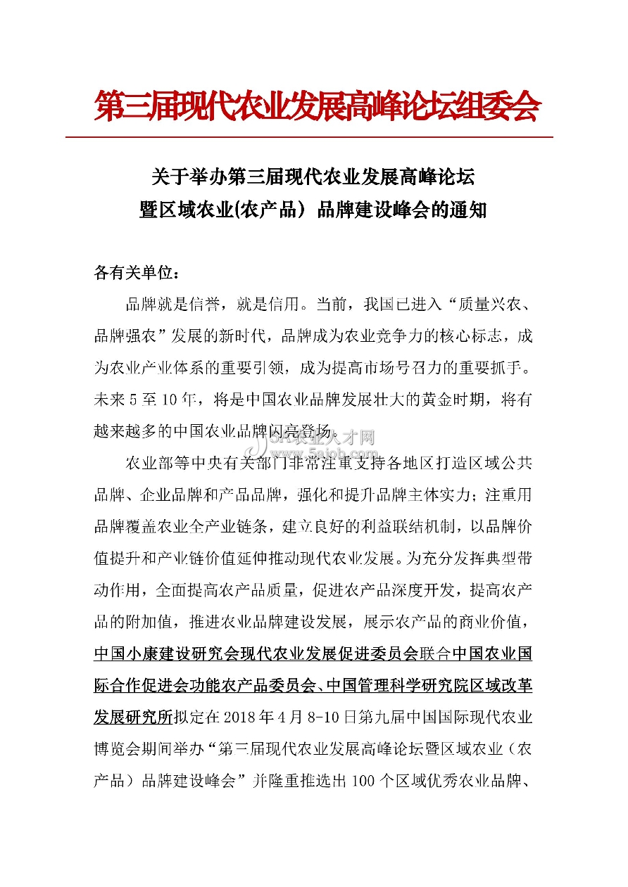 第三屆現代農業發展高峰論壇-暨區域農業(農產品)品牌建設峰會通知