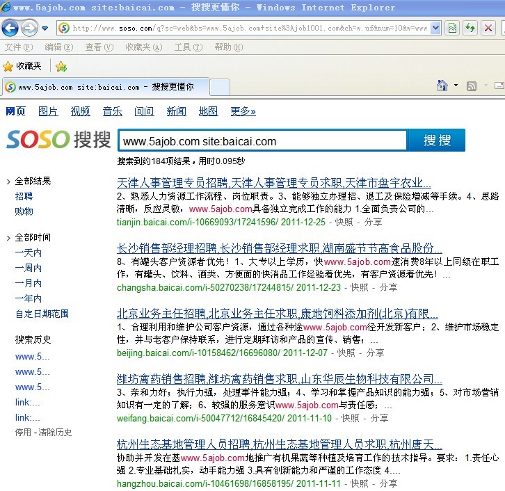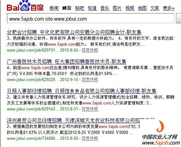 (說明,圖中搜索代碼 www.vistaarticles.com site:xxx.com 表示在xxx.com上出現了www.vistaarticles.com的頁面,由于本網在部分職位頁面包含版權域名,這些網站非法采用軟件采集后顯示)
