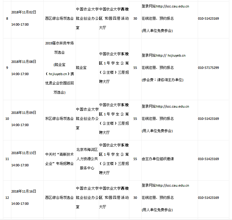 中國農業大學2019屆畢業生校園招聘會邀請函(秋季學期2018.09-2018.12)