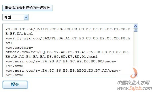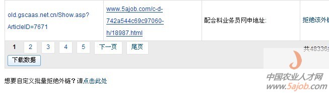 至此,大功搞成,等待百度站長平臺處理,但生效時間較慢,筆者的經驗大約是30天左右,本文由專業的垂直招聘網站農業畜牧人才網http://www.vistaarticles.com/原創轉載請注明出處,本文介紹的方法,簡單易行,關鍵是觀察垃圾外鏈的結構,如果有另外特殊的結構,修改其中的正則部分代碼即可,為了網站的良性健康發展,充分利用站長平臺提供給我們的工具也是非常必要的。