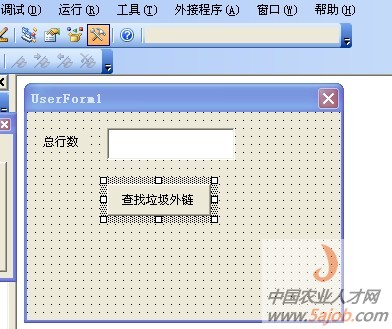添加一個用戶窗體,拖1個文本框取名Txt_Rows,再拖一個按鈕取名Cmd_Find,構成如下界面