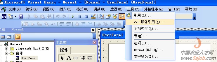 安裝完畢,后打開word>> 工具>>宏>>Visual Basic編輯器>>工具>>WEB服務引用